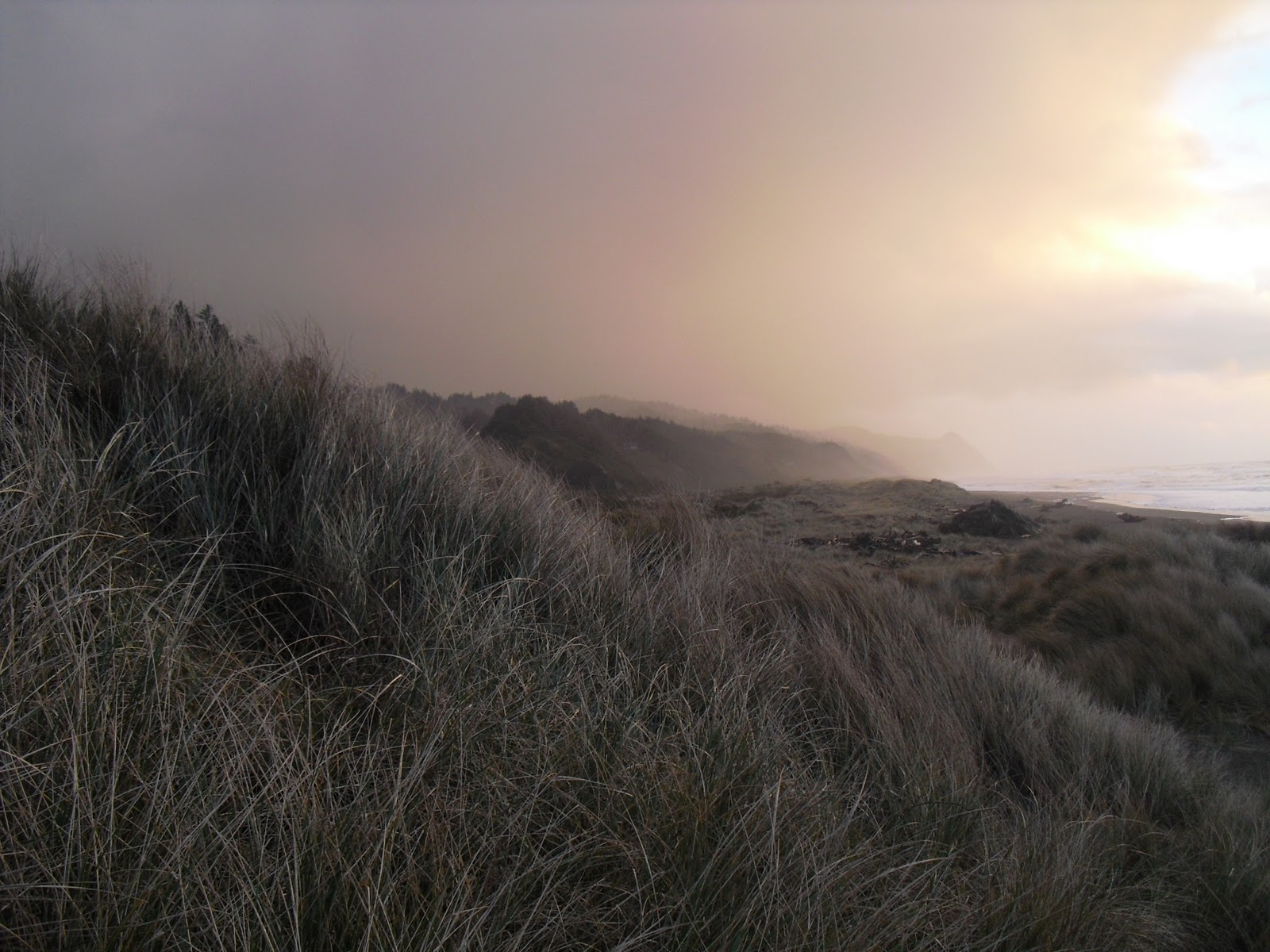 Along the windswept (headwind-swept!) shores of Oregon. |